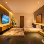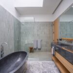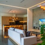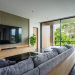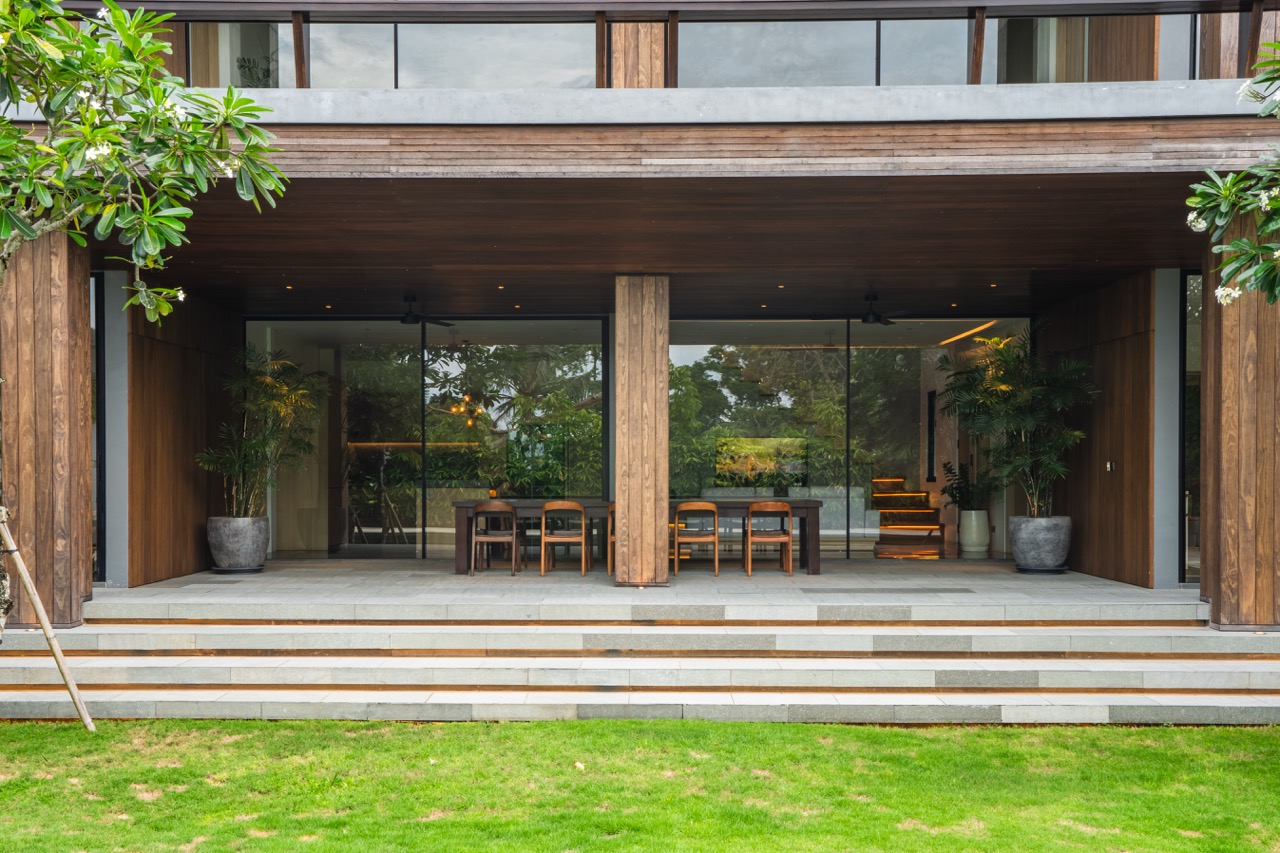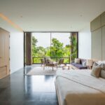 The estate features four spacious bedrooms, each designed to provide privacy and comfort. Fully furnished with high-quality fixtures and carefully selected furniture, the interiors reflect a modern industrial aesthetic with clean lines and functional elegance. Large glass windows dominate the living areas, allowing abundant natural light to flow throughout the property while creating a seamless connection between indoor and outdoor spaces.