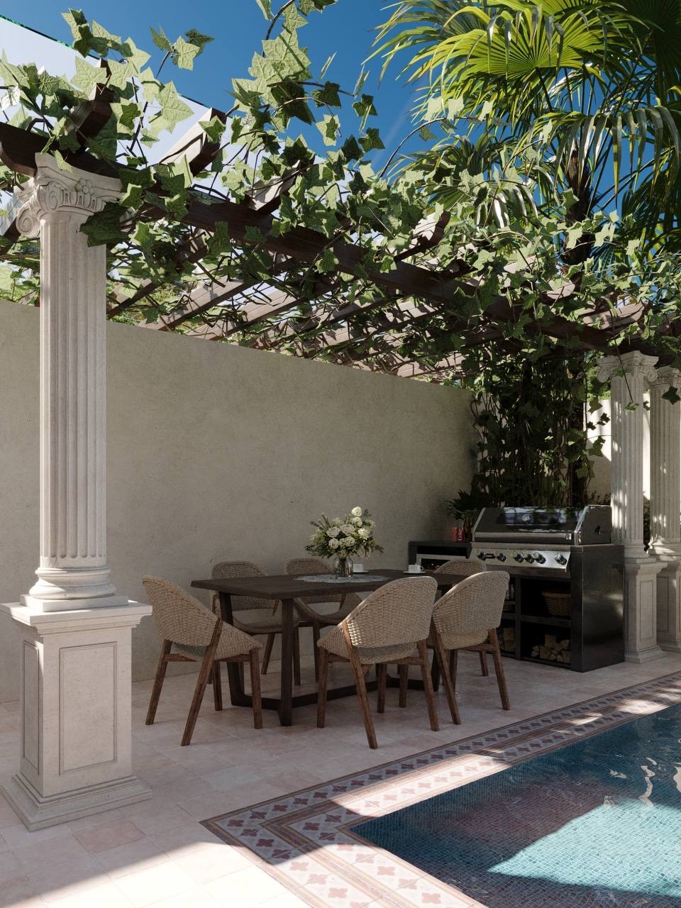 Designed for comfort and sophistication, this two-level villa features five well-appointed bedrooms with ensuite bathrooms, an enclosed living area and kitchen, a private swimming pool, rooftop, BBQ area, outdoor shower, and sun bed, ideal for relaxation or entertaining. Enhanced with PDAM water, 7,700 watts of electricity, water filtration, exhaust systems, and 24/7 security within the gated complex, it ensures a hassle-free lifestyle. The Pink Zone allows residential use with potential business licensing, offering flexibility for rental or commercial ventures, while the extension option maximizes long-term value in Pandawa’s growing market.